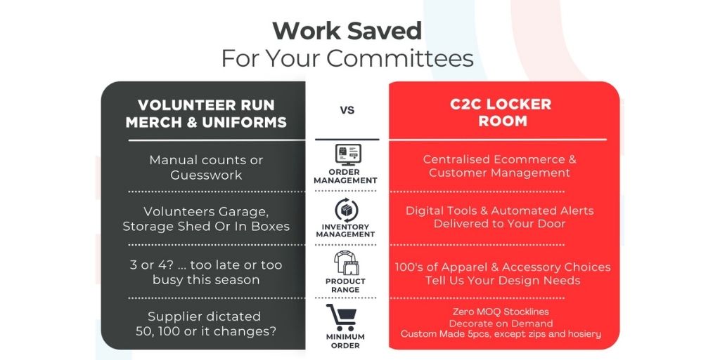 C2C takes the heavy lifting out of uniforms and merchandise for community sport.