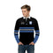 Design Your Own Custom Knitted Long Sleeve Jersey with Coast 2 Coast Sports. This design has traditional stripes around the part of the abdomen and one elbow. Easily change the colours and add logos on this example template. On the front you can upload your school emblem or mascot if you like. One front side and the whole back has a bigger blank area where you can put a big school name or team name, or the year number of your graduation just as an idea.