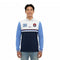 Design Your Own Custom Knitted Long Sleeve Jersey with Coast 2 Coast Sports. These are like Canterbury jumpers and this design has stripes around the upper and lower body and elbows. Easily change the colours and add logos on this example template. You can upload your school emblem or mascot, or a big school name or team name, or add the year number of your graduation, and place them anywhere you like on the front or back.